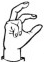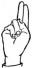 На ћирилици написано ЗАГОРКА БАЧЕВИЋ састоји се из 14 слова [?]. Исписано ћириличном једноручном азбуком за глувонеме: